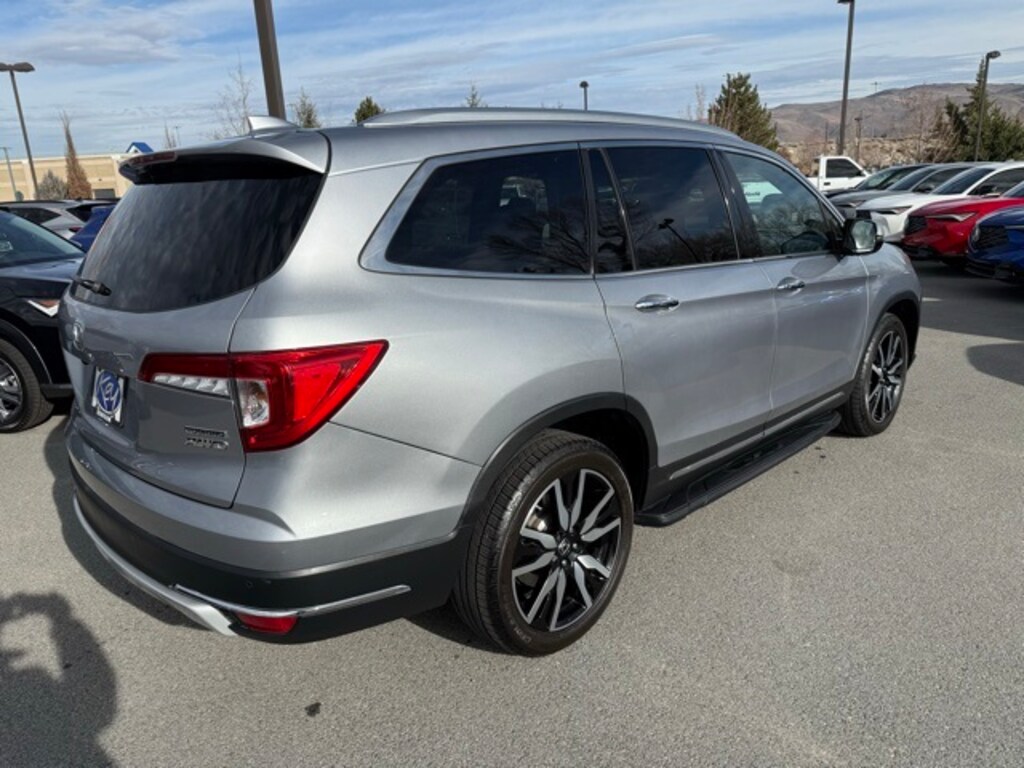 Key Acura of Reno is proud to present you with another True Market Priced Pre-Owned Vehicle. Transparent Pricing Of $ !! This 2019 Honda Pilot Touring 8 Passenger is loaded with the following Factory Options: AWD AWD, 10 Speakers, 3rd row seats: split-bench, 4-Wheel Disc Brakes, 4.334 Axle Ratio, A/V remote: CabinControl, ABS brakes, Air Conditioning, Alloy wheels, AM/FM radio: SiriusXM, Apple CarPlay/Android Auto, Auto High-beam Headlights, Auto-dimming Rear-View mirror, Automatic temperature control, Blind Spot Information (BSI) System warning, Brake assist, Bumpers: body-color, Compass, Delay-off headlights, Driver door bin, Driver vanity mirror, Dual front impact airbags, Dual front side impact airbags, Electronic Stability Control, Emergency communication system: HondaLink, Exterior Parking Camera Rear, Forward collision: Collision Mitigation Braking System (CMBS) + FCW mitigation, Four wheel independent suspension, Front anti-roll bar, Front Bucket Seats, Front Center Armrest, Front dual zone A/C, Front fog lights, Front reading lights, Fully automatic headlights, Garage door transmitter: HomeLink, Headphones, Heated door mirrors, Heated Front Bucket Seats, Heated front seats, Heated rear seats, Illuminated entry, Lane departure: Lane Keeping Assist System (LKAS) active, Leather-Trimmed Seats, Low tire pressure warning, Memory seat, Navigation system: Honda Satellite-Linked Navigation System, Occupant sensing airbag, Outside temperature display, Overhead airbag, Overhead console, Panic alarm, Passenger door bin, Passenger vanity mirror, Power door mirrors, Power driver seat, Power Liftgate, Power moonroof, Power passenger seat, Power steering, Power windows, Radio data system, Radio: AM/FM Premium Audio System, Rear air conditioning, Rear anti-roll bar, Rear reading lights, Rear seat center armrest, Rear window defroster, Rear window wiper, Reclining 3rd row seat, Remote keyless entry, Roof rack: rails only, Security system, Speed control, Speed-sensing steering, Speed-Sensitive Wipers, Split folding rear seat, Spoiler, Steering wheel mounted audio controls, Tachometer, Telescoping steering wheel, Tilt steering wheel, Traction control, Trip computer, Turn signal indicator mirrors, Variably intermittent wipers, and Wheels: 20" Machine-Finished Alloy!!