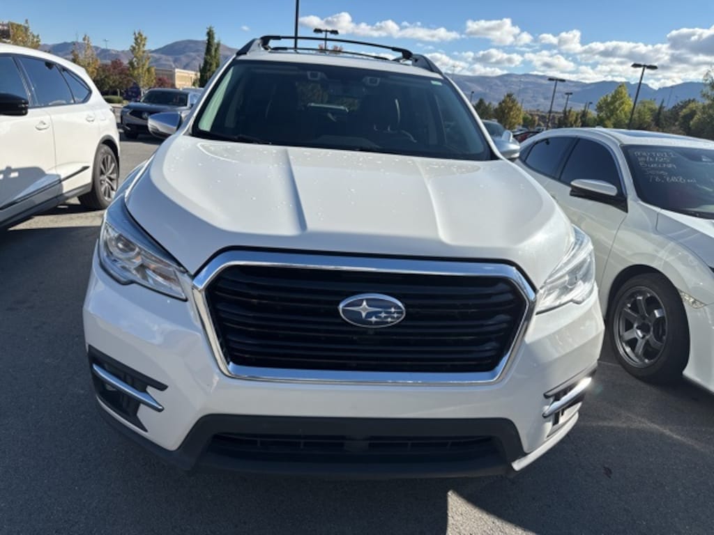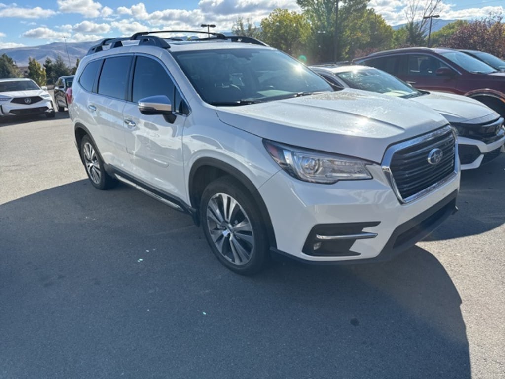 This Ascent Touring is nicely equipped with Popular Package #3 (Aero Crossbar Set, All-Weather Floor Liners, Auto-Dimming Exterior Mirror w/Approach Light, Cargo Tray, Rear Bumper Cover, and Rear Seatback Protector), Standard Model, 14 Speakers, 3rd row seats: bench, 4-Wheel Disc Brakes, ABS brakes, Air Conditioning, Alloy wheels, AM/FM radio: SiriusXM, Auto High-beam Headlights, Auto-dimming Rear-View mirror, Automatic temperature control, Axle Ratio: 4.44, Brake assist, Bumpers: body-color, CD player, Compass, Crystal White Pearl Body Side Molding, Delay-off headlights, Driver door bin, Driver vanity mirror, Dual front impact airbags, Dual front side impact airbags, Electronic Stability Control, Emergency communication system: STARLINK Safety and Security (Subscription Required), Exterior Parking Camera Rear, Four wheel independent suspension, Front anti-roll bar, Front Bucket Seats, Front Center Armrest, Front dual zone A/C, Front fog lights, Front reading lights, Fully automatic headlights, Garage door transmitter: HomeLink, harman/kardon® Speakers, Heated & Ventilated Front Bucket Seats, Heated door mirrors, Heated front seats, Heated rear seats, Heated steering wheel, Illuminated entry, Knee airbag, Low tire pressure warning, Memory seat, Navigation System, Occupant sensing airbag, Outside temperature display, Overhead airbag, Overhead console, Panic alarm, Passenger door bin, Passenger vanity mirror, Perforated Leather-Trimmed Upholstery, Power door mirrors, Power driver seat, Power Liftgate, Power moonroof, Power passenger seat, Power steering, Power windows, Radio data system, Radio: Subaru STARLINK 8.0" Multimedia Nav System, Rain sensing wipers, Rear air conditioning, Rear anti-roll bar, Rear reading lights, Rear window defroster, Rear window wiper, Reclining 3rd row seat, Remote keyless entry, Security system, Speed control, Splash Guards, Split folding rear seat, Spoiler, STARLINK/Apple CarPlay/Android Auto, Steering wheel mounted audio controls, Tachometer, Telescoping steering wheel, Tilt steering wheel, Traction control, Trip computer, Turn signal indicator mirrors, USB Charging Ports, Variably intermittent wipers, Ventilated front seats, and Wheels: 20" Dk Gray Aluminum Alloy w/Machine Finish.